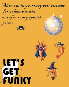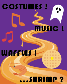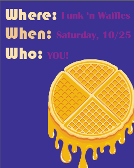 This is a social media carousel I designed for a Halloween party at a local restaurant in Syracuse, NY, Funk 'n Waffles. The Big Shrimp Extravaganza Halloween party takes place every year, but has only been held at Funk 'n Waffles for two years now, so I wanted to highlight the event as a way for Syracuse students and locals to get involved in the city and do something fun with their community. The carousel is designed to be used as an Instagram post on Funk 'n Waffles account, and it was designed for a project in VIS 207, introduction to graphic design.